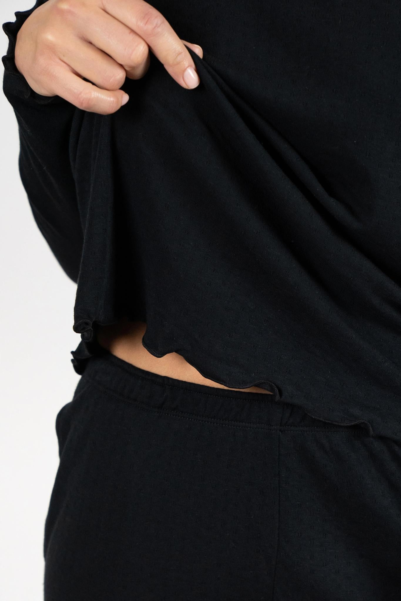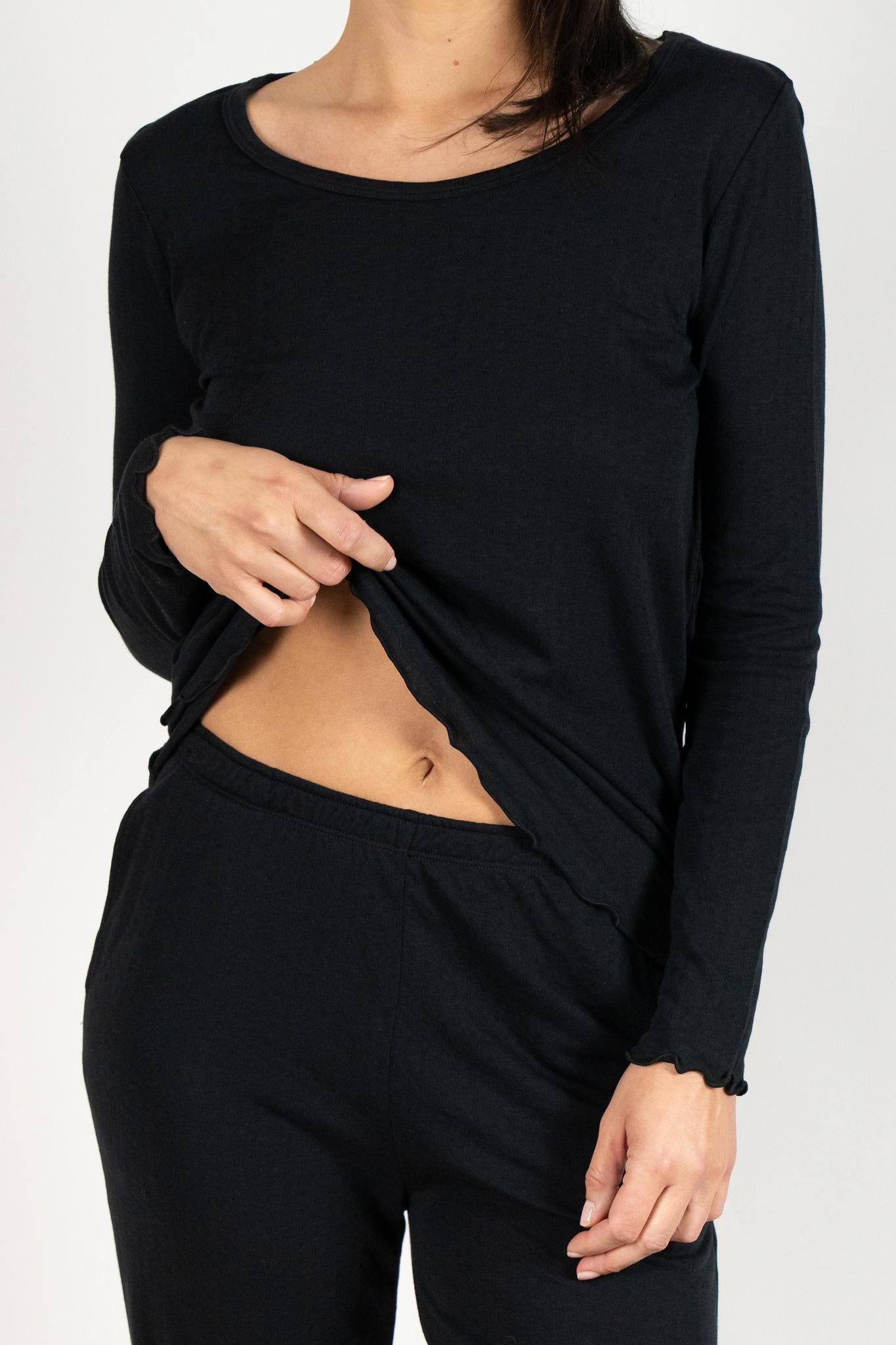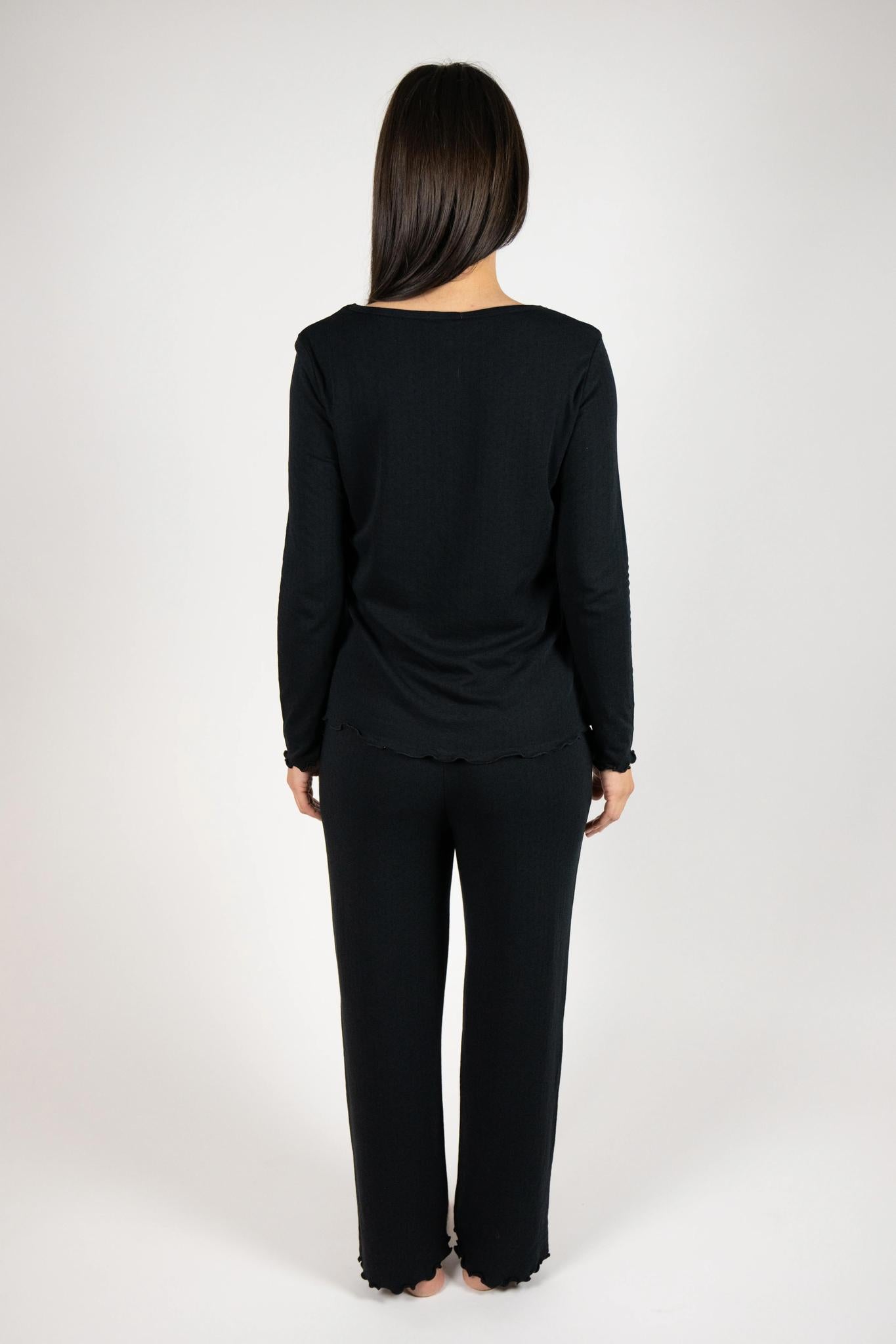 Jolene Long Pajama Set in Black.